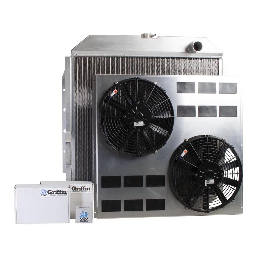 A "one stop shop" for all of your cooling needs. We have paired this radiator with a high performance electric fan and a hand formed aluminum fan shroud. This ensures optimal airflow across the entire core surface area.