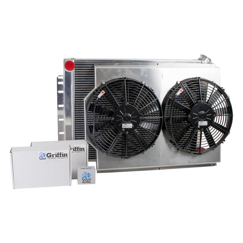 A "one stop shop" for all of your cooling needs. We have paired this radiator with a high performance electric fan and a hand formed aluminum fan shroud. This ensures optimal airflow across the entire core surface area.