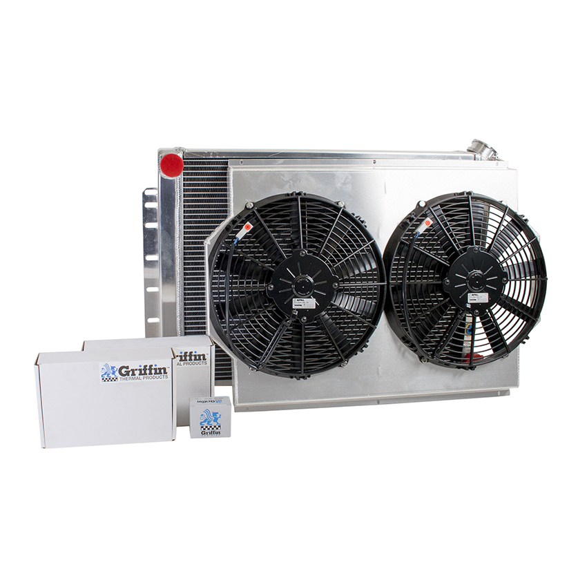 A "one stop shop" for all of your cooling needs. We have paired this radiator with a high performance electric fan and a hand formed aluminum fan shroud. This ensures optimal airflow across the entire core surface area.