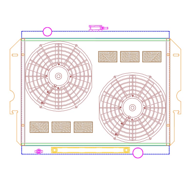 A "one stop shop" for all of your cooling needs. We have paired this radiator with a high performance electric fan and a hand formed aluminum fan shroud. This ensures optimal airflow across the entire core surface area.
