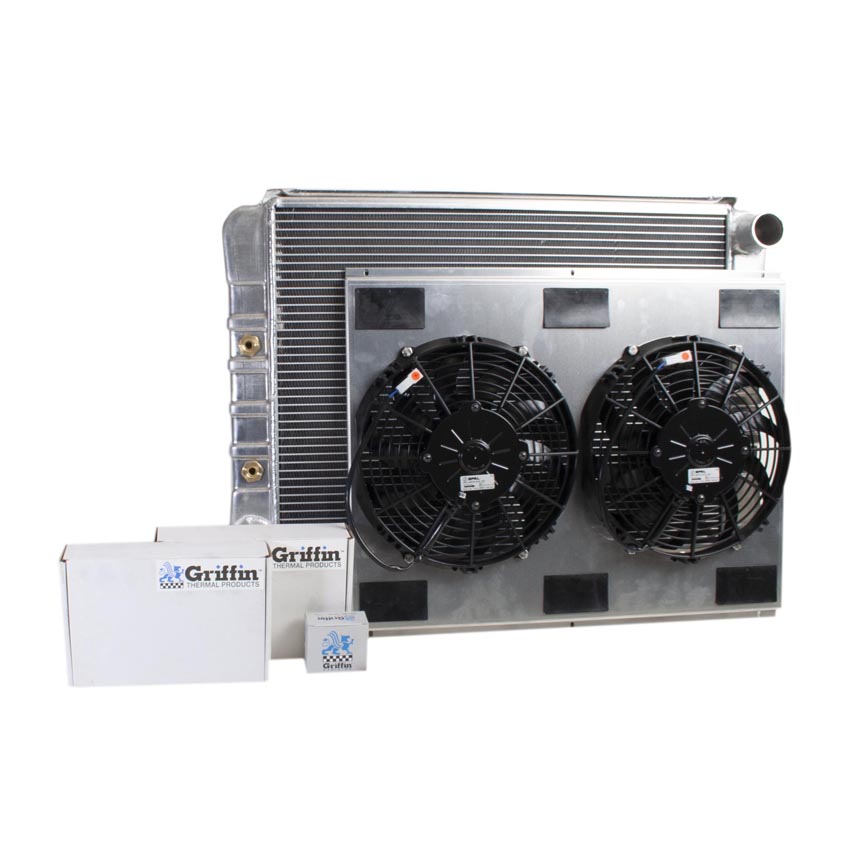 A "one stop shop" for all of your cooling needs. We have paired this radiator with a high performance electric fan and a hand formed aluminum fan shroud. This ensures optimal airflow across the entire core surface area.