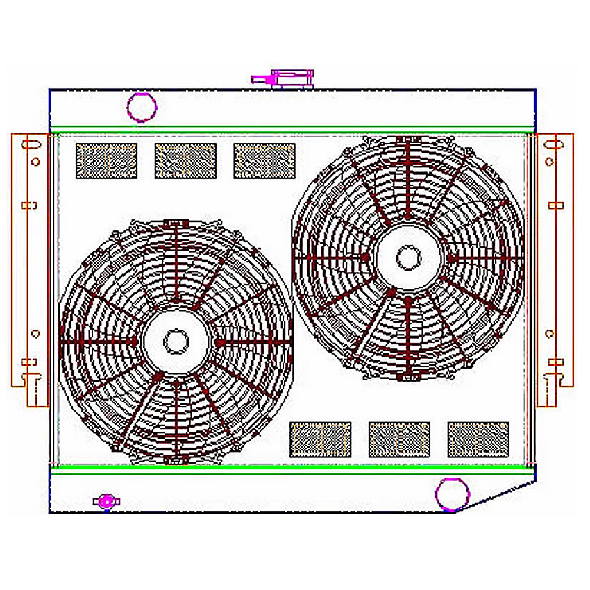 A "one stop shop" for all of your cooling needs. We have paired this radiator with a high performance electric fan and a hand formed aluminum fan shroud. This ensures optimal airflow across the entire core surface area.