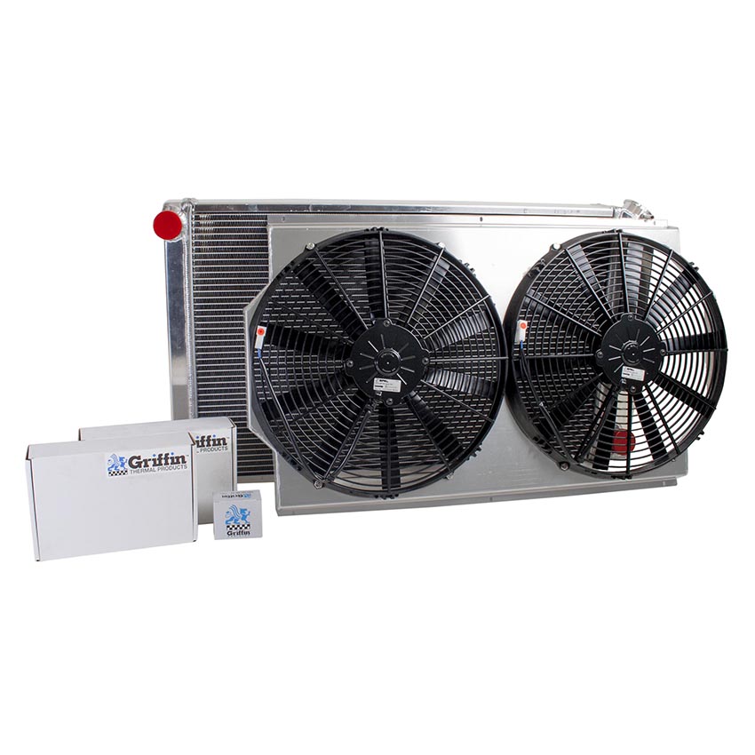 A "one stop shop" for all of your cooling needs. We have paired this radiator with a high performance electric fan and a hand formed aluminum fan shroud. This ensures optimal airflow across the entire core surface area.