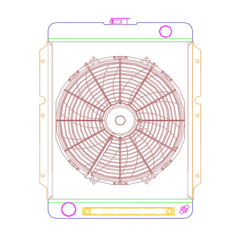 A "one stop shop" for all of your cooling needs. We have paired this radiator with a high performance electric fan and a hand formed aluminum fan shroud. This ensures optimal airflow across the entire core surface area.