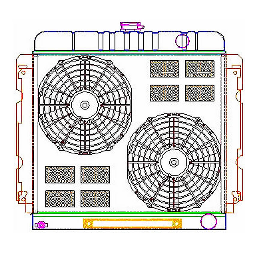 A "one stop shop" for all of your cooling needs. We have paired this radiator with a high performance electric fan and a hand formed aluminum fan shroud. This ensures optimal airflow across the entire core surface area.