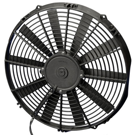 Description: Spal Electric High Performance Puller Fan, 14.00" Diameter, 956 True CFM / 2.05" Total Thickness / Slim Straight Blade Puller