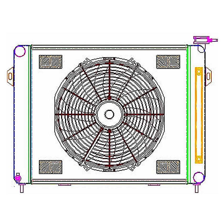 A "one stop shop" for all of your cooling needs. We have paired this radiator with a high performance electric fan and a hand formed aluminum fan shroud. This ensures optimal airflow across the entire core surface area.